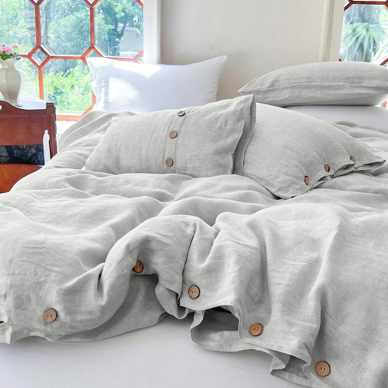 GOTS Certificate 100% French Flax Linen Bed Sheets Set Deep Pocket Breathable Soft Stone Washed Linen Bedding Set